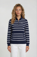Le pull PRINCESS réinvente la marinière féminine avec élégance et confort. Son col zippé pratique et sa poche kangourou apportent une touche moderne tout en offrant chaleur et fonctionnalité au quotidien.